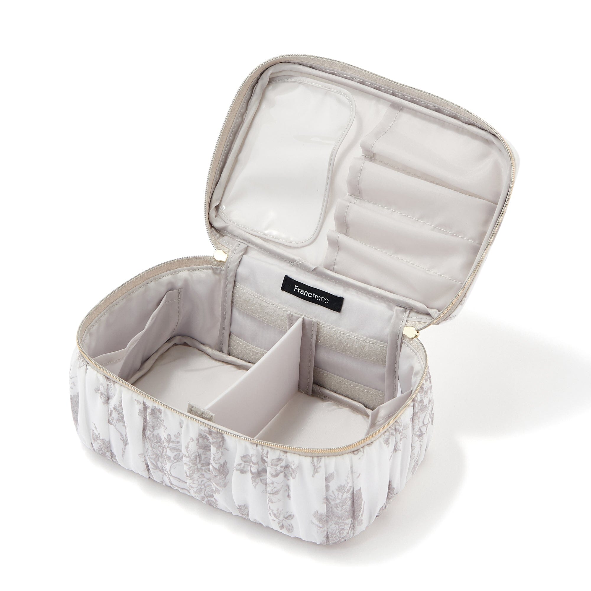 A pouch made of fluffy layers of chiffon fabric with a trendy floral pattern.The delicate flower print has the same design as the fragrance series "White Musk". By displaying them together, you can create a sweet sense of unity in your makeup space.